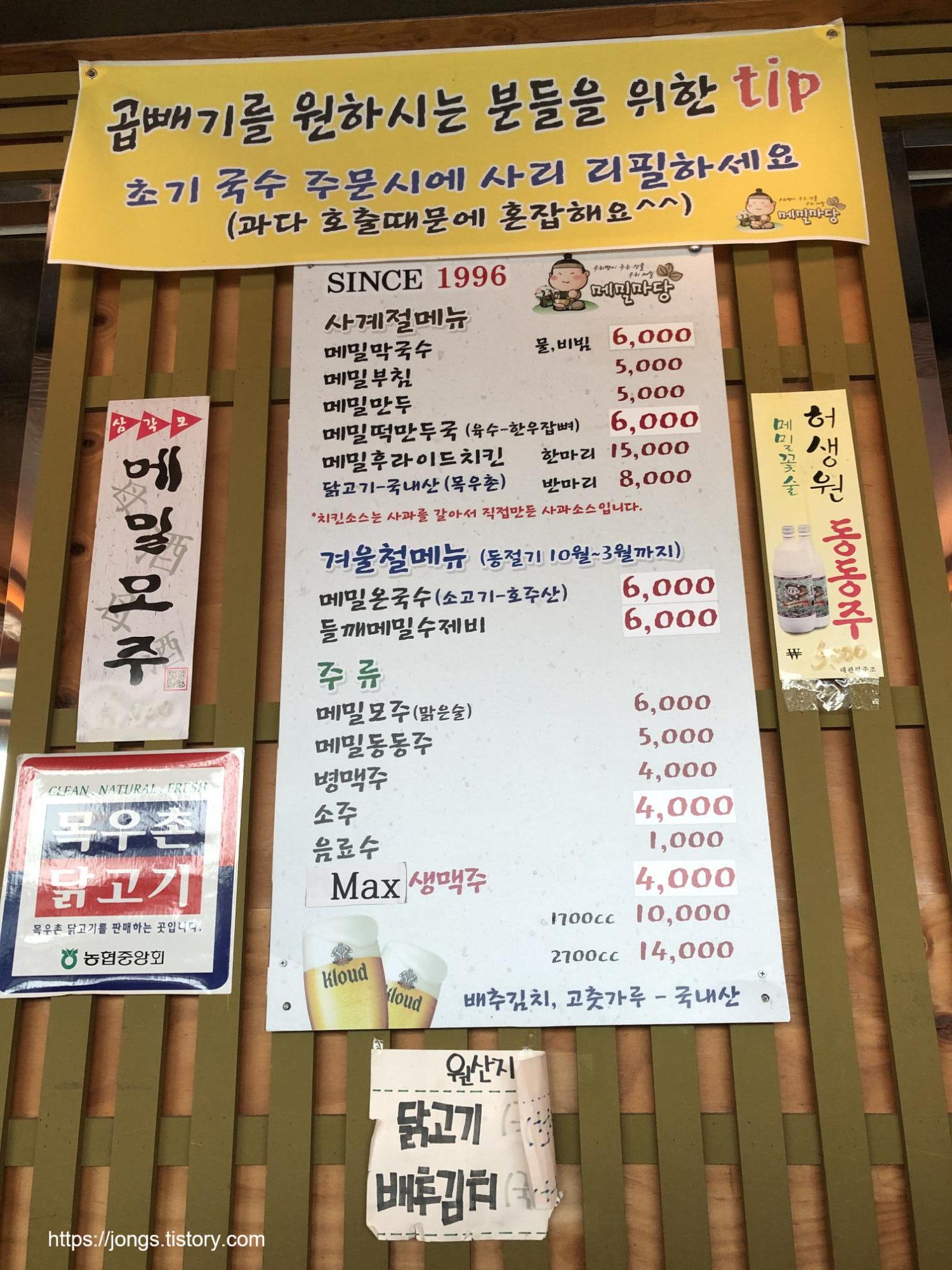 충주에 일이 있어 올라 갔는데 점심 먹을 곳을 고민하다 충주시민분이 추천해 주신 메밀마당에 가 보았습니다. 예전에 충주에 오면 ‘원조중앙탑막국수’에서 ‘메밀싹 막국수’를 먹었는데 이번에는 치킨과 막국수를 함께 먹을 수 있는 맛집이라 추천해 주셔서 믿고 방문했습니다.