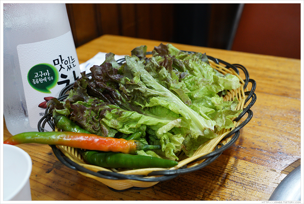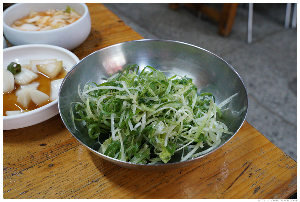 ▼ 고기는 부드럽고 전체적으로 간이 세지 않고 적당히 되어 있고 자연스러운 느낌이 듭니다. 그리고 고기는 간장소스에 찍어 먹는데 많이 찍어 먹으면 상당히 짭니다. 조선간장으로 만든 소스 같은데, 간장 그대로 다른 것 없이 낸 것 같기도 하고요.