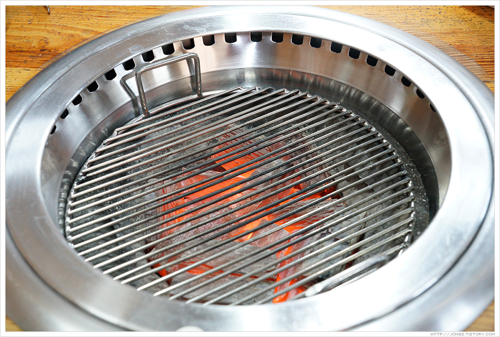 ▼ 기본 반찬을 준비하신 후 고기 굽는데 필요한 불을 해서 오시네요. 그리고 첫 고기는 직접 구워 주십니다. 그 뒤로는 직접 구워 먹었습니다.