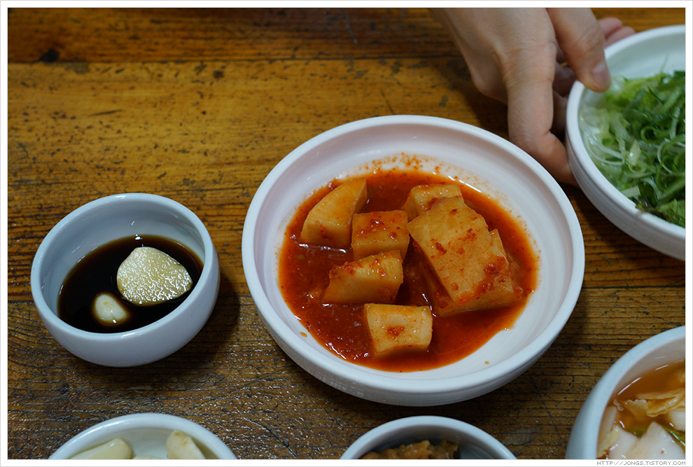 ▼ 주문을 받으시고 주방으로 들어가셔서 기본 반찬을 준비해서 차려 주십니다. 여러 사람이 있을 줄 알았는데 주인 할머님 혼자 준비하시더군요.