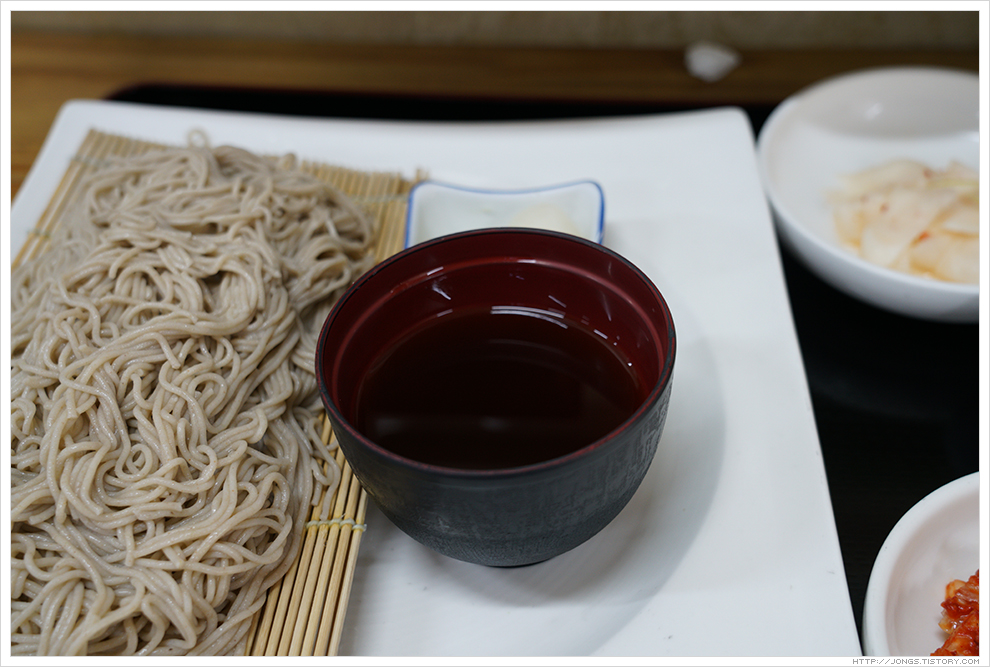 한 여름이라 더워서 차가운 쯔유(간장육수)에 담궈 먹는 메밀국수인 모리소바를 주문 했는데 다른 테이블에서는 막국수, 따뜻한 메밀국수 등 다양하게 주문해서 놀랬습니다. 개인적으로는 다음에 따뜻한 메밀국수와 냉 막국수도 도전해 보고 싶더군요.