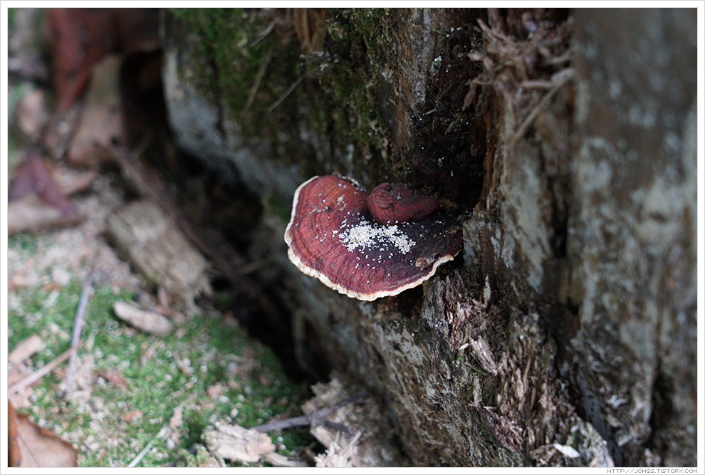 ▼ 육림호 주변을 한 바퀴 돌아보고 싶었지만 시간이 없어서 데크 다리에서만 잠깐 있다 왔습니다. 수목원 문 닫는 시간에 맞추어 나가기 위해 다음번을 기약했습니다. 30분 정도 남겨 두고도 잠시라도 둘러보기 위해 이 방향으로 오시는 분도 있더라구요. 여하튼 빨리 입구로 가려고 빠른길로 빠져 나왔습니다. 나오는 길에 보니 고목에 유독 버섯들이 눈에 들어 왔고 역시 사람의 손을 타지 않은지라 크기가 꽤 되는 버섯이였습니다.