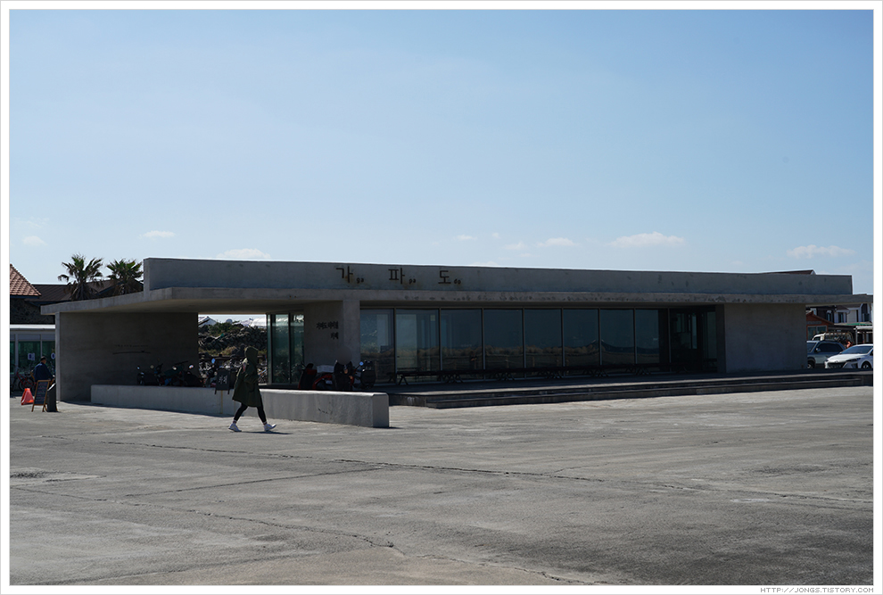 ▼ 배에서 내려 조금 걸어오니 가파도 여객터미널 겸 카페가 시선을 사로잡습니다. 가파도 랜드마크 처럼 인상에 남네요.