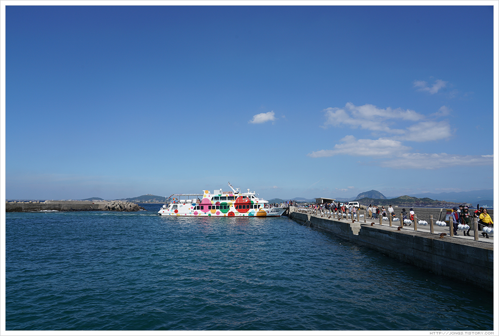 ▼ 지금은 모슬포항 근처에 운진항이 새로 생겼고 가파도와 마라도 가는 배편을 이 곳에서 이용할 수 있습니다. 운진항에 도착하고 주차를 하는데 배가 보였고 서둘러서 이 배를 타고 가나 다음 배를 타고 가나 고민이 되었습니다. 그 때쯤 정시에 출발하겠다는 방송이 나왔고 여유롭게 가야겠다는 생각에 다음 배편을 타고 가기로 했습니다.