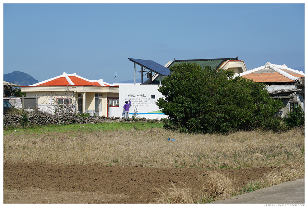 ▼ 가파도 주택 벽면을 꾸미고 있습니다.