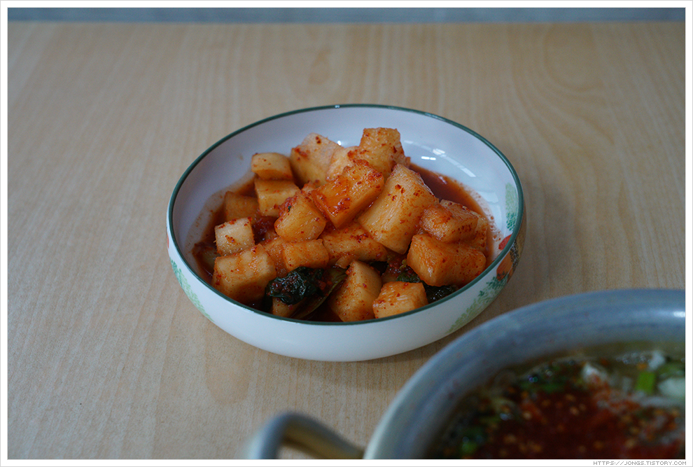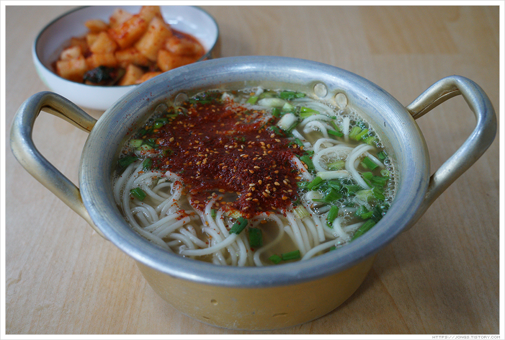 ▼ 고추가루를 섞기 전에 멸치 육수 먼저 맛 보았습니다. 역시 진한 멸치육수의 바디감이 확 느껴지는 것이 속이 확 풀립니다. 육수가 참 맛 있고 꽤나 뜨겁습니다. 후루룩 맛 있게 먹으니 행복합니다. 나갈 때 손님 한 분이 더 오셨습니다.