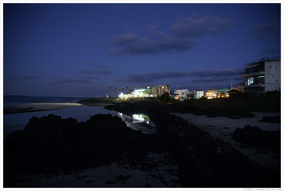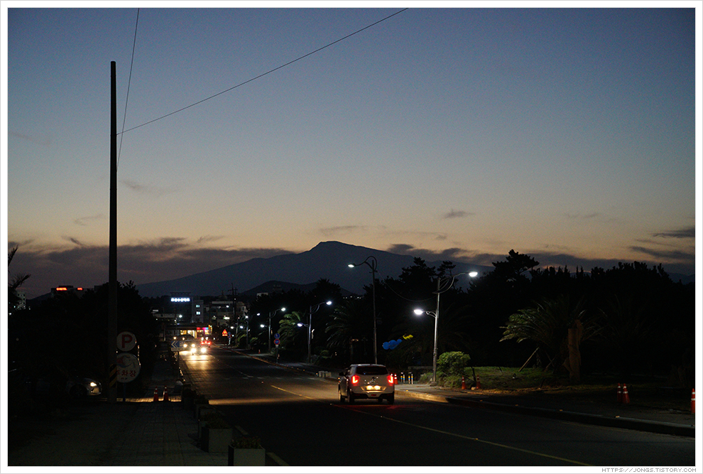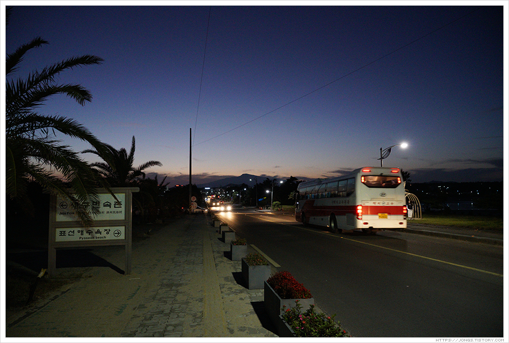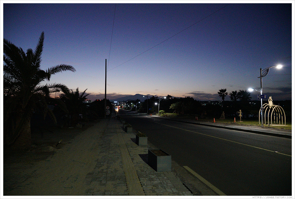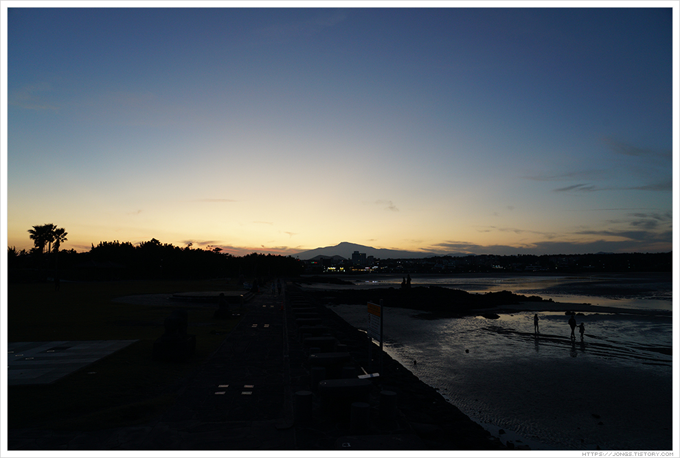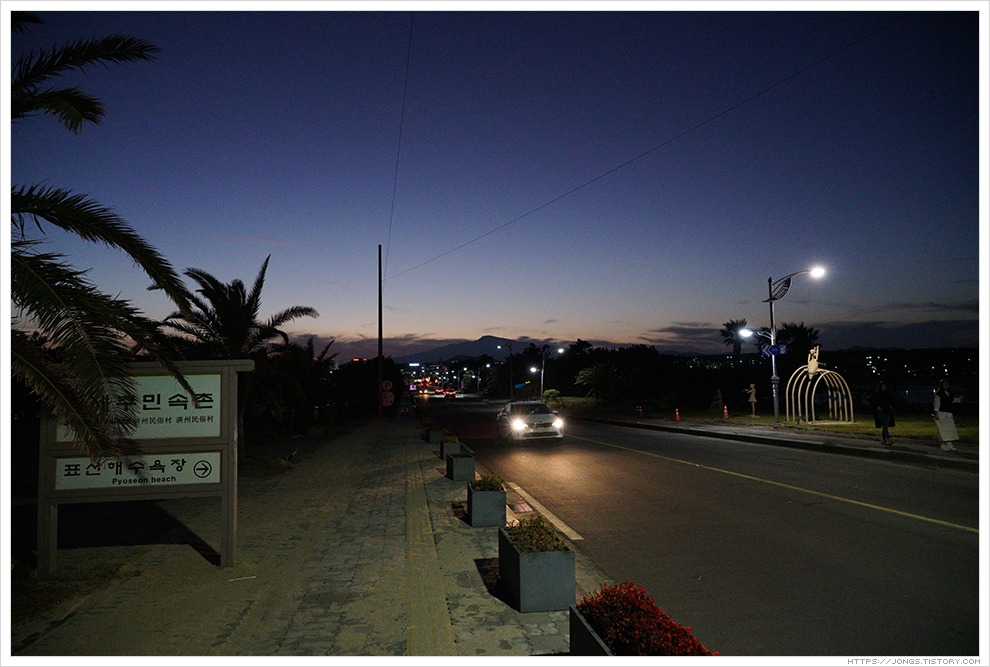 ▼ 노을이 한라산 넘어로 살짝 보이고 어둠이 서서히 내려오고 있습니다. 하늘을 아직 태양의 밝은 빛이 살짝 남아 있는데 표선해수욕장과 어우러져 너무나도 아름다운 풍경을 보여 줍니다. 잠깐 들렀다 가려고 했는데 완전히 어두워질 때까지 시간을 보내게 되었습니다.