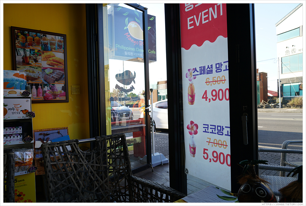 일단 멸치국수로 유명한 '춘자멸치국수'에 가기 전에 망고주스를 한번 더 먹고 싶었습니다. '가시아방국수' 인근에 '망고레이 섭지코지점'이 있습니다. 망고레이로 갑니다.