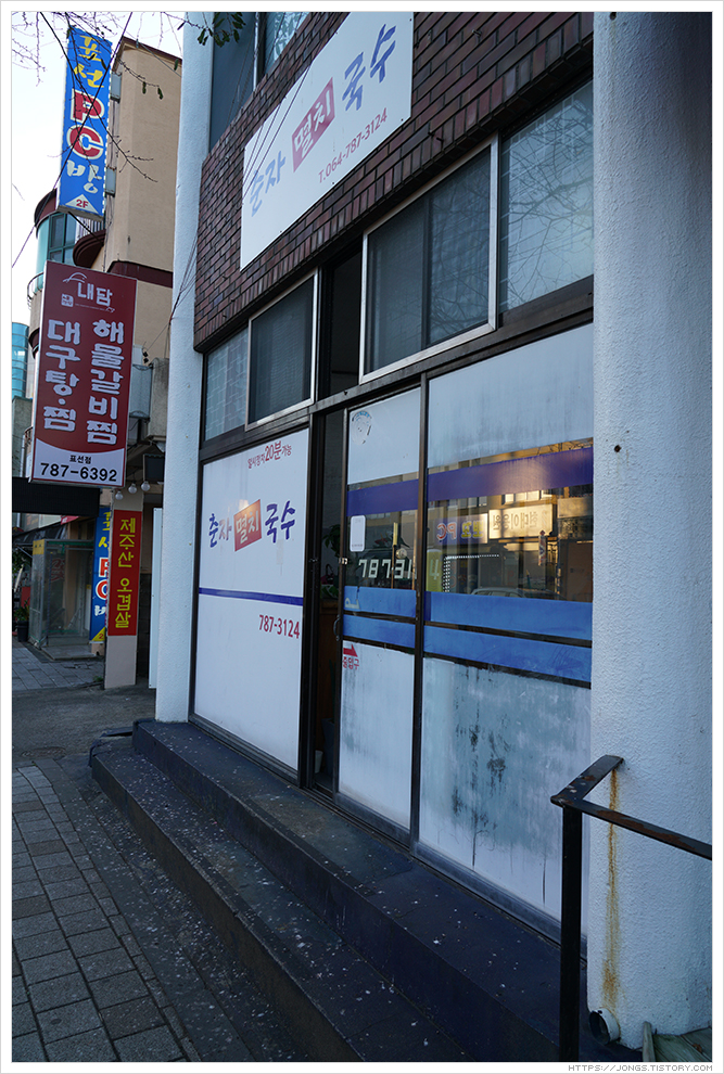 ▼ 이 곳이 바로 제주 멸치국수로 유명한 '춘자멸치국수'입니다. 수요미식에도 방송이 되었습니다. 예전 이 부근 편의점에서 김밥과 라면을 먹긴 했었는데 맛 있는 국수집이 있을줄은 상상도 못했습니다. 방송을 통해 알게 되었고 개인적으로는 맛이 좋아서 다시 방문을 했습니다.