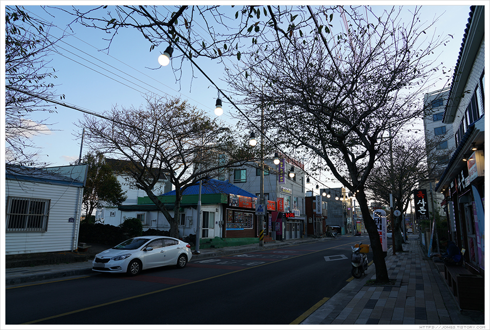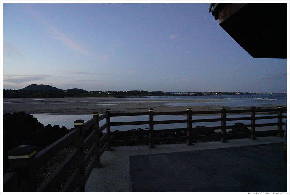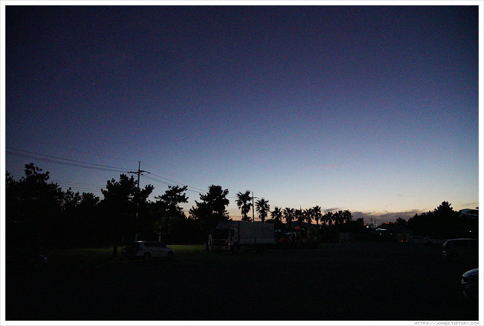 ▼ 속이 풀리는 멸치국수를 먹고 가까이 있는 바닷가를 보기 위해 표선해수욕장에 왔습니다. 해가 진 후 황혼기가 되었습니다. 사진 촬영하기 좋은 시간이라고 해서 골든타임이라고도 하고 천체관측하는 사람들은 시민박명으로 이야기 하는 아주 예쁘고 신비로운 시간입니다.