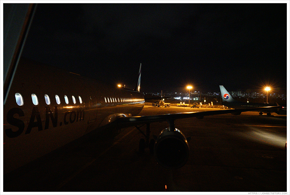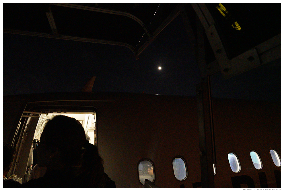 ▼ 오늘은 부산에서 제주행 비행기에 오를 때부터 제주에서 부산행 비행기에서 내릴때까지 탑승교로 못 타고 버스로 이동해서 비행기에 오르고 내립니다. 버스 이동으로 탑승해서 제주 출발전 부산행 비행기를 탑승할 때 제주 하늘에 뜬 달을 볼 수 있었습니다.