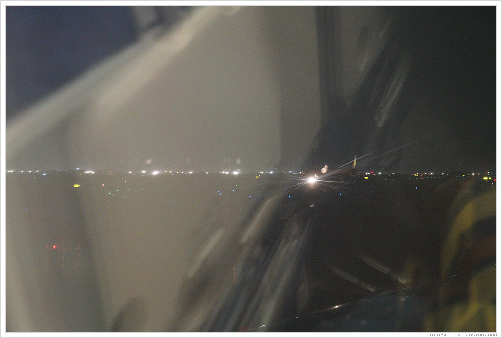 ▼ 제주공항 출발전인데 바닷가에는 고기잡이 배가 밝힌 불로 환합니다.
