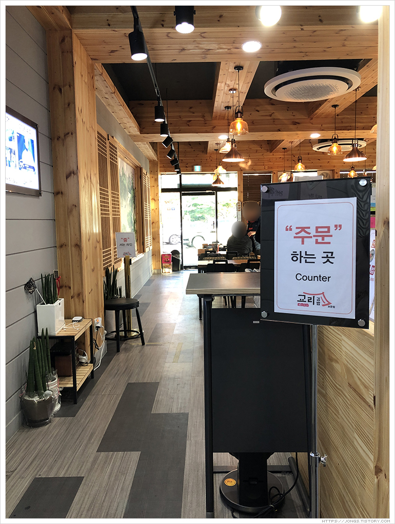 ▼ 홀 너머로 나가는 문이 교리김밥 주차장과 연결된 문입니다. 먼저 주문하는 곳에서 주문을 하고 결재 후 홀에 앉거나 기다렸다 포장한 것 가지고 가면 됩니다.