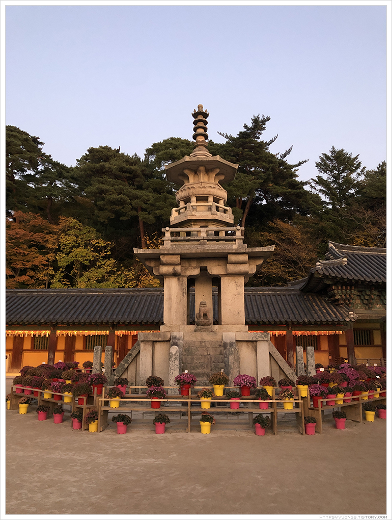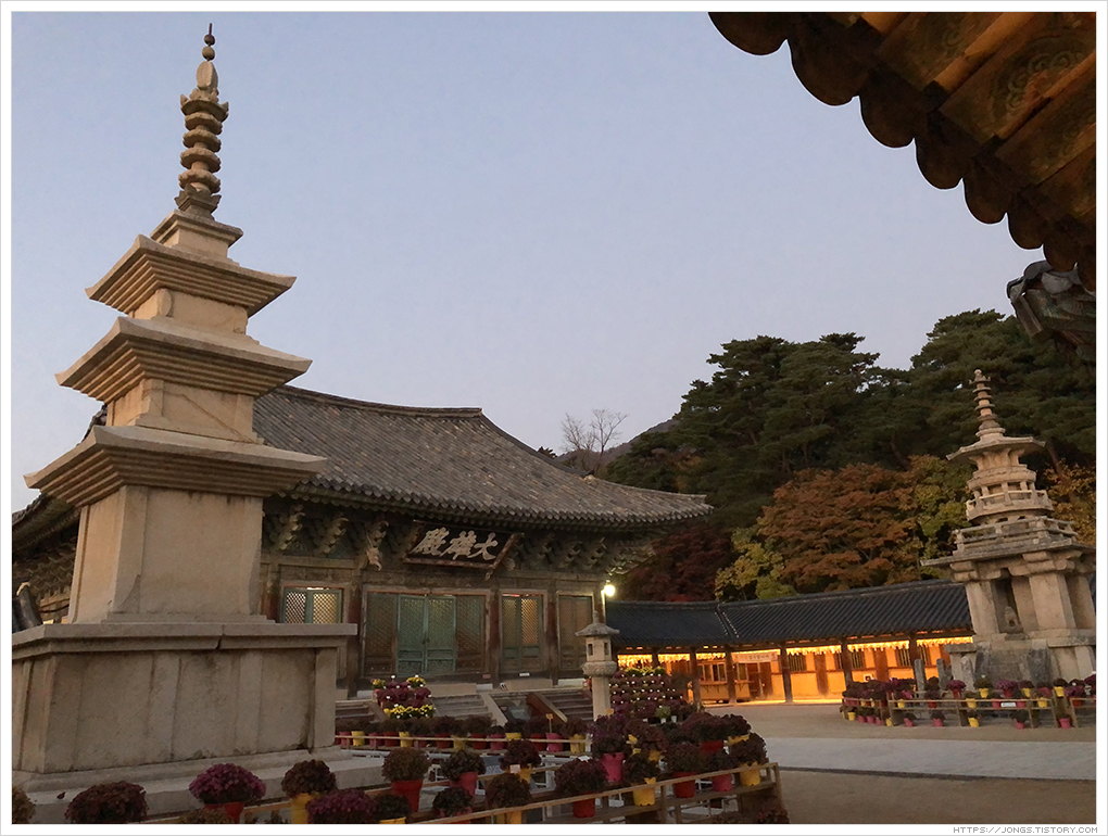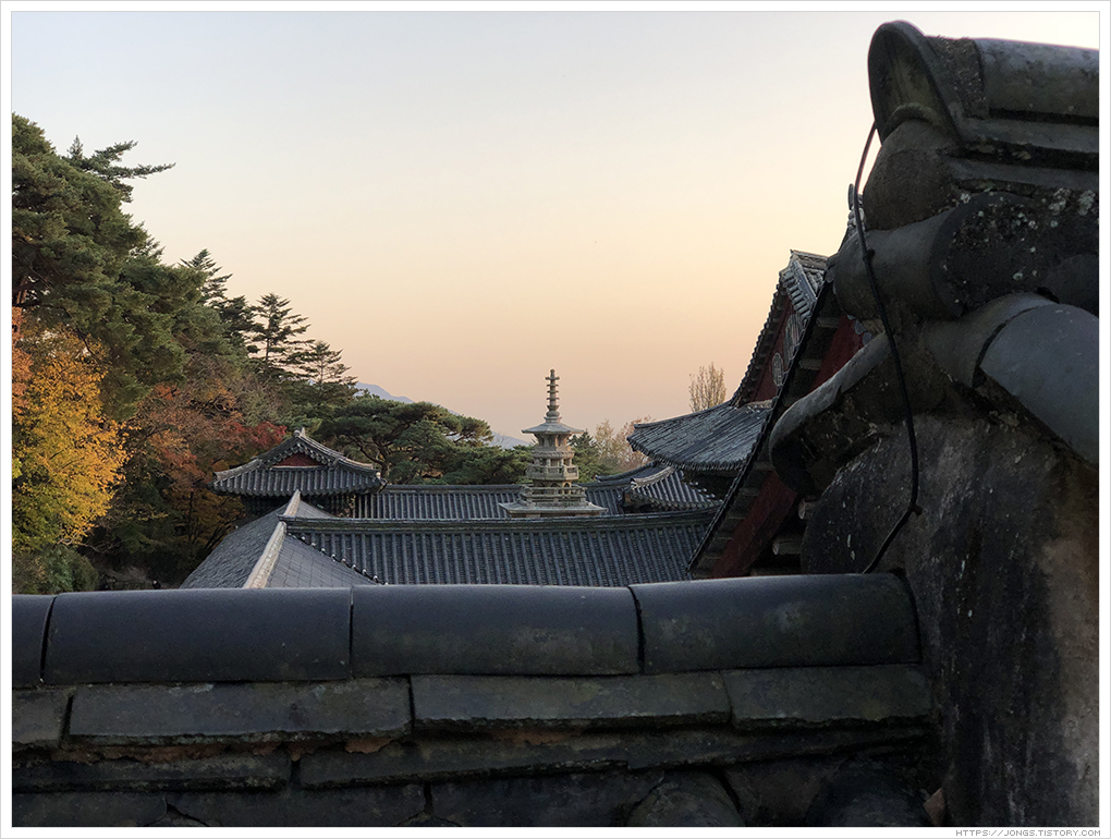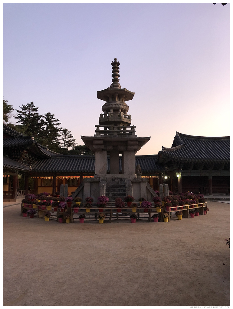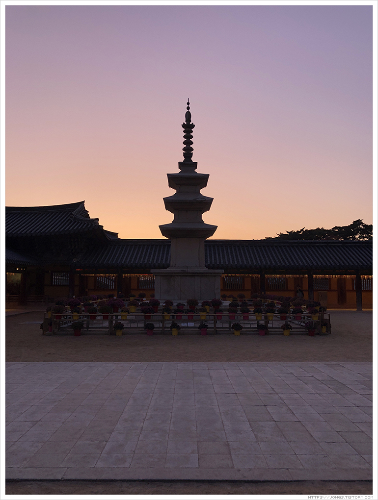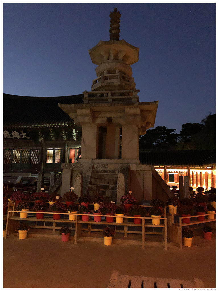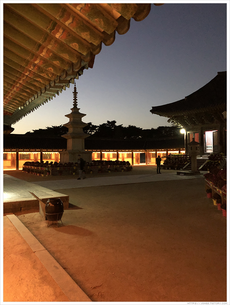 불국사는 만들어질 때의 이야기도 그렇고 문화재로서 아름다움을 볼 수 있어 많이 방문을 했습니다. 그 동안 봐 왔던 불국사는 불국사의 일부였을뿐 불국사의 진면목은 방문객이 거의 떠난 후 예식과 예불이 진행되는 시간이라는 것을 이날 알게 되어 참 가슴 뛰는 경험을 하였고 기억속에 두고두고 회자될 것 같습니다. 불국사의 영혼을 느낄 수 있었던 시간이었습니다. 시간과 날씨와 일정이 잘 맞아야 되는데 드라마 '도깨비'에서 나왔던 대사처럼 '날이 좋아서' 좋은 기회가 되어서 경험할 수 있었던 것이 아닐까라는 생각이 듭니다.