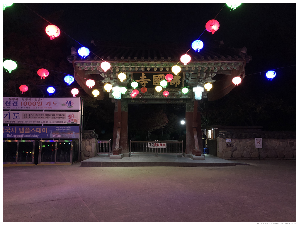 ▼ 밤이 찾아오는 불국사는 참 아름답고 신비스러우며 교회나 성당처럼 종교적인 색체가 강해지는 시간이었습니다. 불국사를 나오는 중에 가로등이 없어 많이 어두웠고 핸드폰 불빛을 밝혀 길을 따라 나왔습니다. 불편함은 있지만 불국사를 더 불국사답게 돋보이게 만들어주는 것이 아닐까라고 생각해 봅니다.