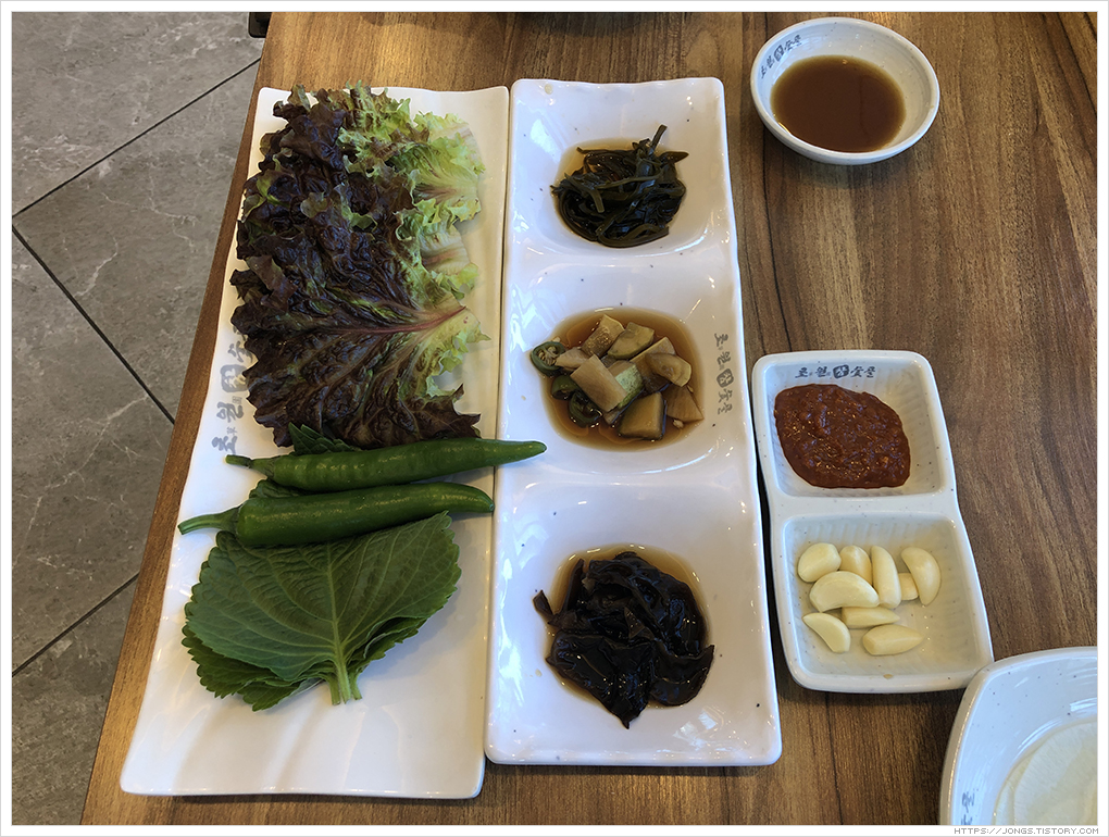 ▼ 식사로 나온 반찬입니다. 콩잎된장장아찌, 총각김치 등이 추가로 나옵니다.