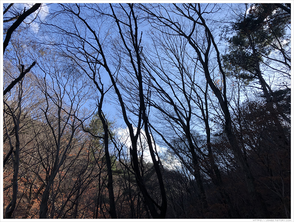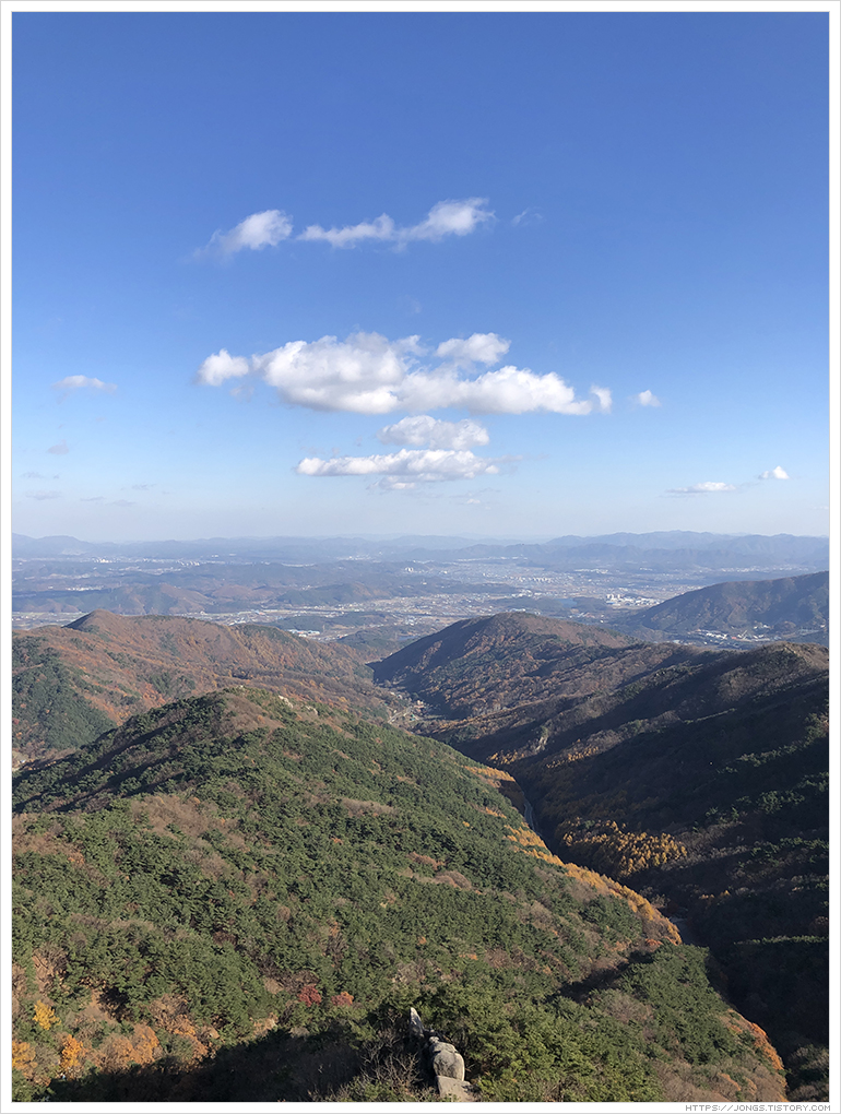 선선한 기온과 바람이 겨울에 가까워졌음을 알려주는 것 같습니다. 더 추워지기전에 팔공산 갓바위를 올라 보았습니다. 하늘이 도와 날씨가 좋았습니다. 푸른 하늘에 하얀 구름이 바람이 빠르게 지나가는 모습을 조금 더 가까이서 볼 수 있었습니다.