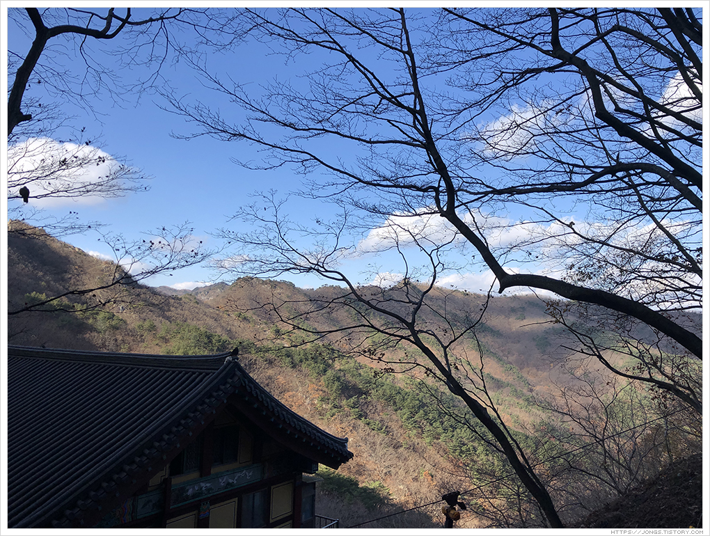 ▼ 산이라 그런지 겨울이 온 것 같습니다. 산골짜기라 바람은 없는데 하늘에 구름 움직이는 것과 소리가 정말 바람 많이 부는구나라고 딱 알려줍니다.