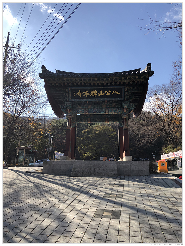 ▼ 팔공산선본사 일주문에 도착했습니다. 오른쪽으로 쭉 올라가면 선본사가 나오고 왼쪽으로 난 길을 따라 산으로 들어가면 팔공산 갓바위가 있는 곳까지 올라갈 수 있습니다.