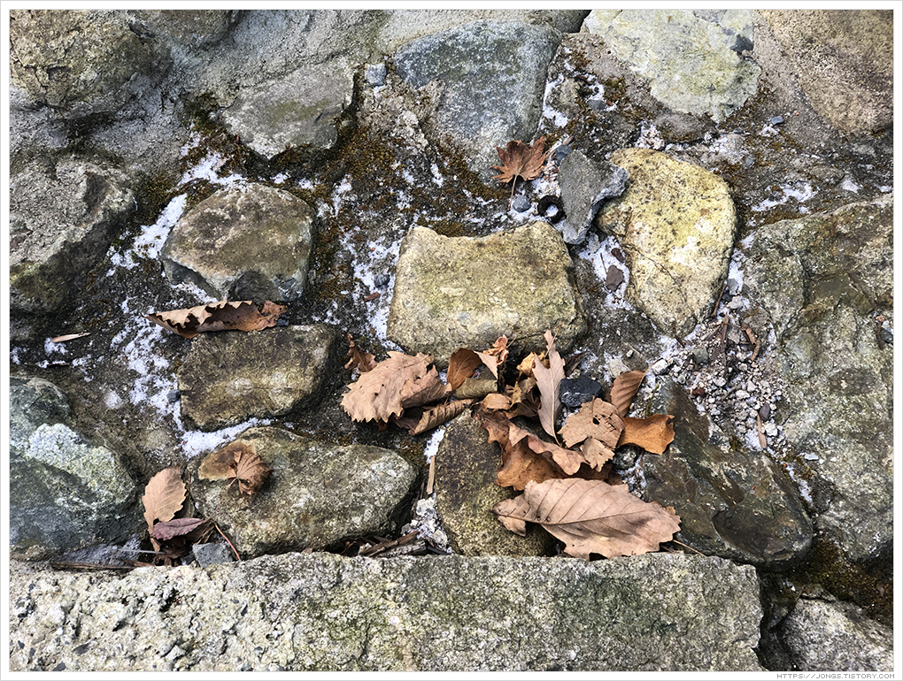 ▼ 다시 내려 갑니다. 산이라 그런지 얼음이 보입니다. 가을의 모습은 살짝 남아 있고 거의 겨울이죠. 절기상으로 11월 8일이 입동이였으니 겨울이라고 봐도 될 것 같고 날짜로 11월까지 가을로 보면 가을이긴 한데 날씨가 많이 추워졌다는 것이 느껴집니다.