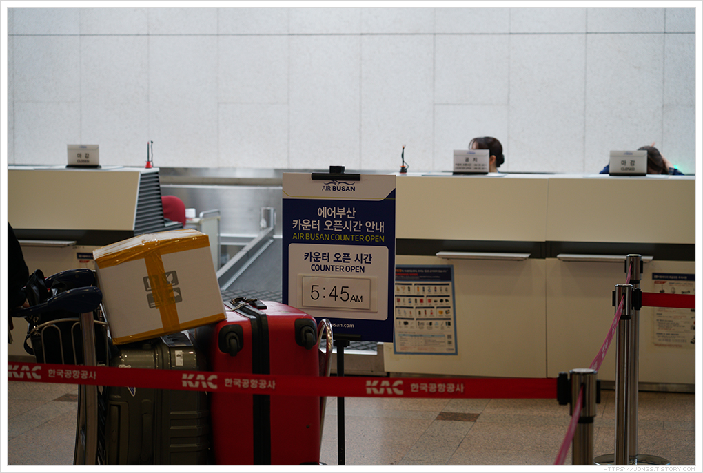 ▼ 에어부산에서는 5:45부터 카운터를 열기 때문에 다른 곳에서 조금 앉아 있다 카운터가 열리면 발권을 했습니다. 당일여행이라 수하물이 없습니다.