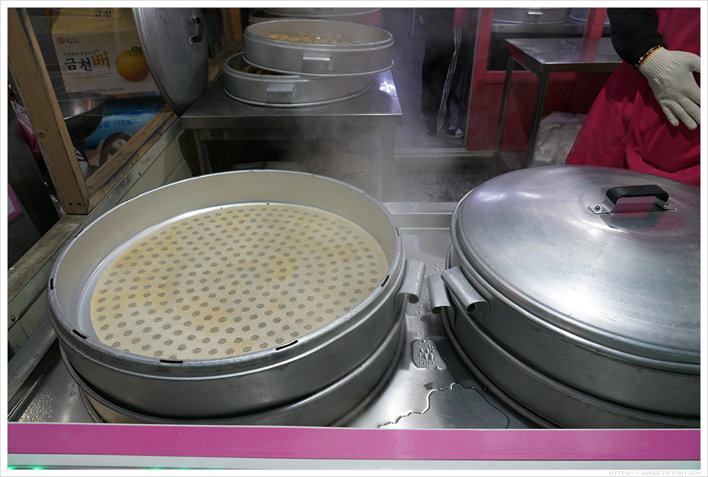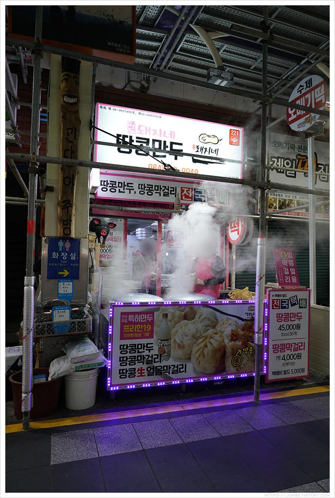 ▼ 서귀포 매일 올레시장 공용주차장에 주차를 하고 걸어서 왔습니다. 분식집도 가 보고 여기저기 찾아 다니다 보니 땅콩만두집을 찾을 수 있었습니다. 음식점 내부에서는 만두를 빚고 찌고 있었고 바깥쪽에서는 찐 만두를 판매를 하고 있었습니다. 왼쪽에 빈 찜기에 만두가 있었거든요. 여기서 바로 꺼내서 주십니다. 땅콩막걸리도 좋아하는데 구입해서 갈까 마님과 정말 많이 고민하다 다음 기회로 넘겨 줍니다.