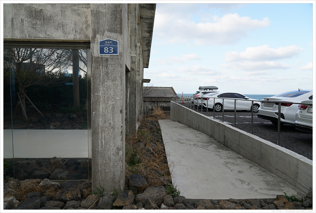 서귀포 매일 올레시장에서 만두를 먹고 마지막 일정으로 카페를 방문했습니다. '공백'이란 곳인데 BTS 멤버 중 1명의 친형이 운영하는 곳이라 유명하다고 합니다. 장소가 어딘지 몰랐는데 와서 보니 친근한 곳이였더군요. 회국수의 원조로 유명한 동복리 해녀촌 인근에 있었습니다.
