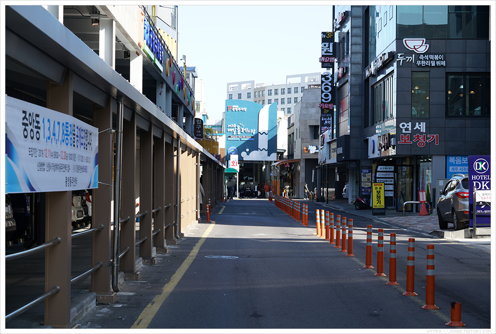 ▼ 서귀포 매일 올레시장 여러 입구 중 하나입니다. 왼쪽이 공용주차장입니다. 주차장으로 오면서 팬시점에 들러서 마님 쇼핑을 했습니다. 예쁜 마음에 드는 것이 많아 둘러보며 필요한 것을 구입했죠.