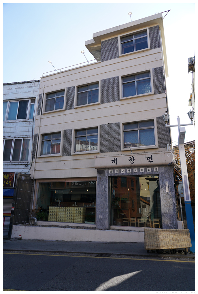 ▼ 개항면 건물도 특이합니다. 오래된 건물에 있는데 입구와 벽면에서 옛날 고급진 건물 느낌이 풍겼습니다. 무엇인가 모르겠지만 스토리가 담겨 있을 것 같은 느낌이 드는 곳입니다. 개항면이라는 글자를 보고 몇초 있다가 이 곳이구나라는 생각이 들었습니다. 그냥 지나칠뻔 했습니다. 그만큼 음식점의 이름과 칠이 이질감 없이 이 건물에 잘 녹아 있다는 것이겠죠. '개항면-한진규세프의 온면'이라고 되어 있습니다.