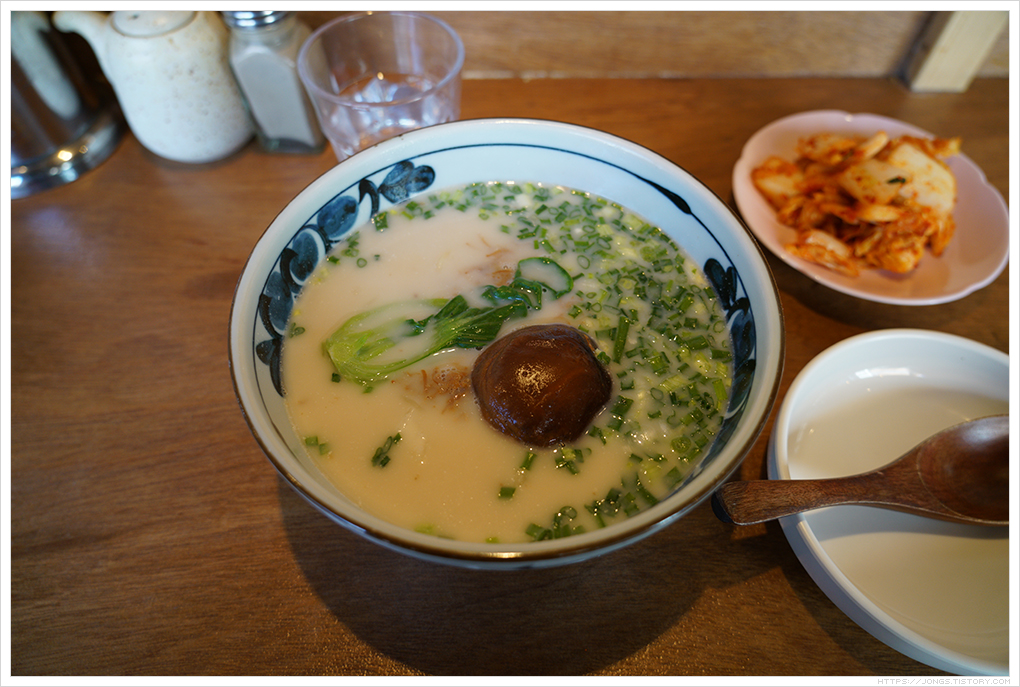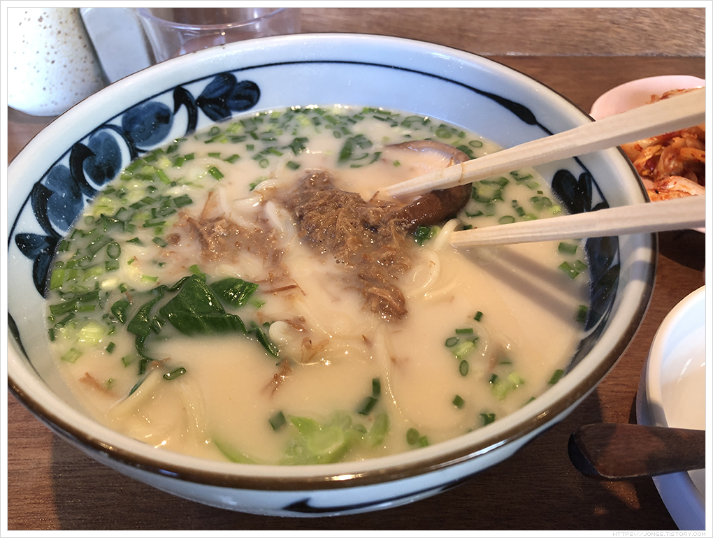 ▼ 온수면이 나왔습니다. 뽀얀 국물에 갈색 표고버섯이 눈에 들어 옵니다.