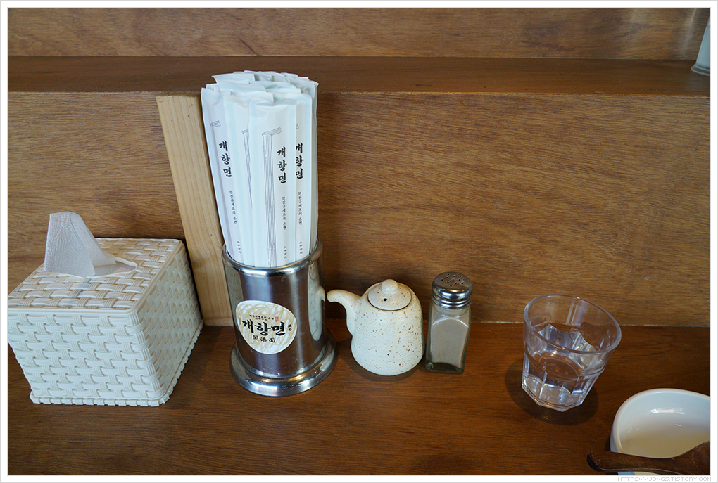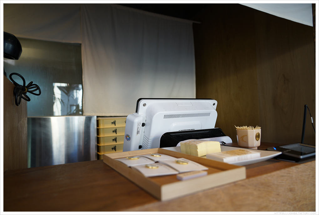 ▼ 바 테이블에는 휴지와 1회용 젓가락(고급나무젓가락)과 양념들이 준비 되어 있습니다.