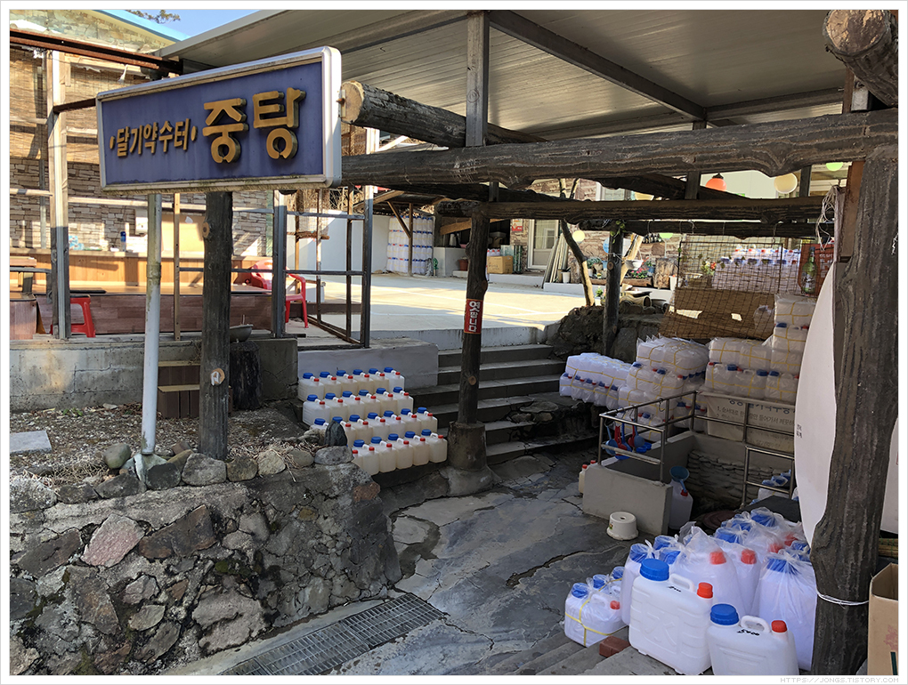중탕외에도 몇 곳이 더 있는데 차로와 가까워 주차할 곳이 없고 걸어서 가야 되는 곳도 있습니다. 다음에 방문할 때는 약수물을 떠서 와 보고 싶습니다. 그리고 달기약수물로 밥도 짓고 닭도 삶아서 내는 음식점이 많은데 맛이 좋다고 합니다. 시간 되시는 분은 드셔보는 것도 나쁘지 않을 것 같습니다.