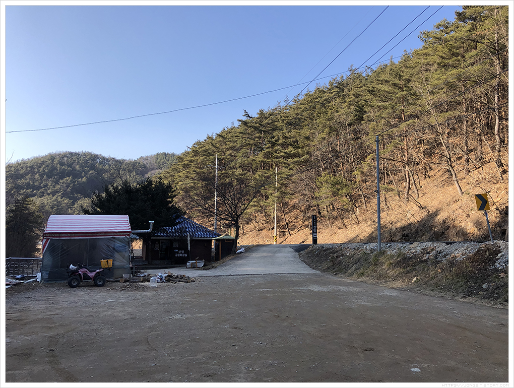 ▼ 상탕에 주차할 수 있는 공간과 공중화장실이 있습니다.