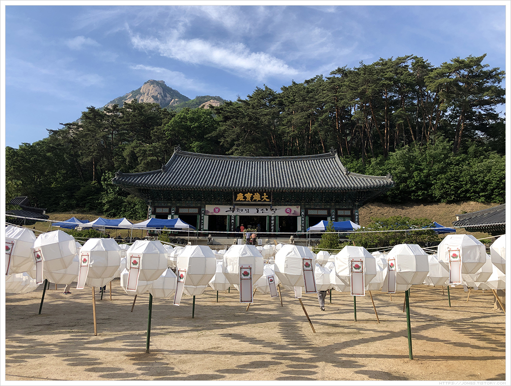 코로나-19로 인해 2020년 올해 부처님오신날 행사는 4월30일(목)에서 5월30일(토)로 변경이 되었습니다. 올해는 윤달이 있어 5월30일도 음력 윤달로 4월9일에 해당됩니다. 음력 4월8일과 음력 윤달 4월8일이 각각 양력4월30일 공휴일과 양력5월30일로 모두 사월초파일이 맞죠. 봉축행사도 5월30일로 연기 되었는데도 불구하고 코로나-19 사태가 잠잠해지다 다시 감염이 일어나는 추세가 되어 연등행사도 취소 되었습니다. 개인적으로 고민이 많이 되긴 했으나 매일 개방되는 곳이 아닌지라 사람들이 많이 방문할 시간을 피해서 방문해 보았습니다.