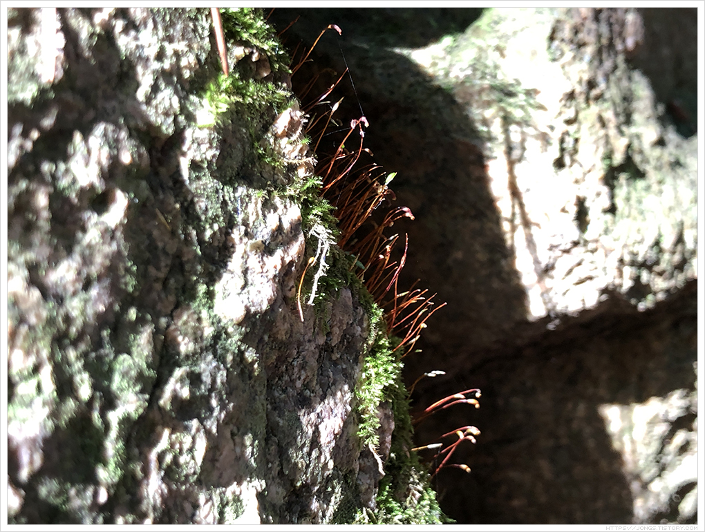 ▼ 몇일 비가 왔었는데 이끼가 활짝 살아 났습니다. 학교 다닐 때 솔이끼와 우산이끼 배웠던 것 같은데 솔이끼 같아 보입니다. 갈색으로 대 위에 있는 것이 홀씨입니다. 공기와 물이 깨끗한 곳에서 자랍니다. 이끼가 보이면 소인국이 있는 것 같은 느낌이 듭니다. 신비로운 식물입니다. 도심에서 보기 어려워졌죠.