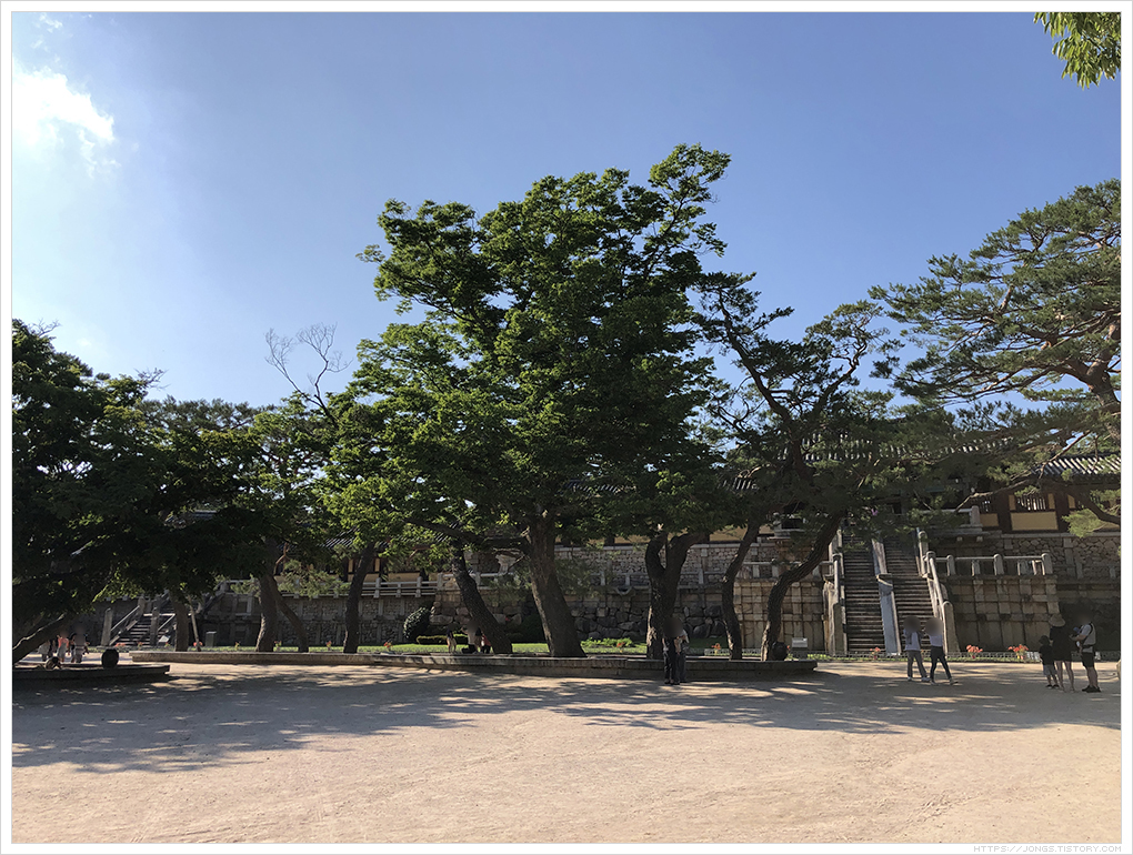 불국사는 역사 깊은 유적이면서 마음을 편하게 해 주는 공간입니다. 경주에 가는 것도 편리하고 경주에서 시간 보내기도 좋아 자주 가는편입니다. 올해는 윤달이 있어서 더위가 늦게 왔습니다. 정말 신기하더군요. 역대급 장마 기간이라 아직 장마가 끝나지 않았지만 이제 여름이라고 생각될만큼의 더위가 시작 되었습니다. 6월 중순에 방문했는데 선선하면서 더위가 조금 있었지만 걷고 움직이는 것은 좋았습니다. 선선한 가을 날씨 정도였던 것 같습니다. 이날 날씨가 너무 좋았는데 하늘이 정말 푸르더군요.