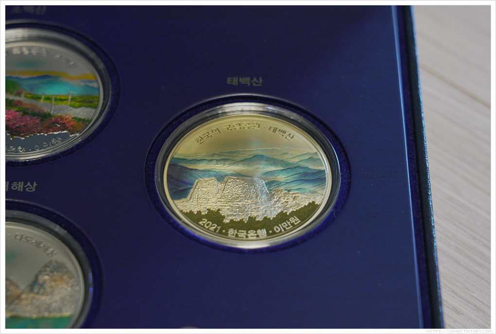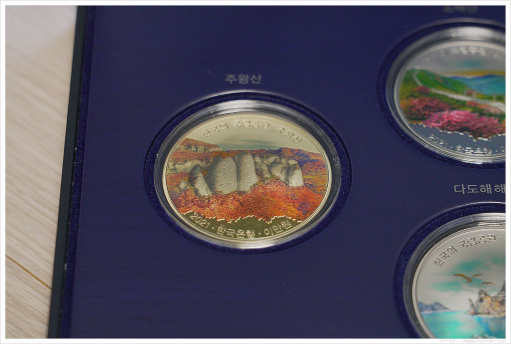 ▼ 4종세트로 2021년 발행된 주화가 모두 들어 있습니다. 소백산(위쪽), 태백산(오른쪽), 다도해해상(아래쪽), 주왕산(왼쪽)입니다.