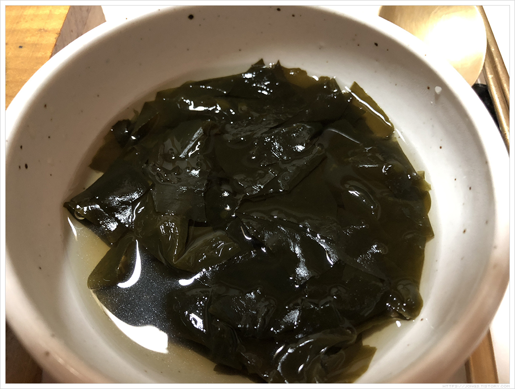 식사죠. 메뉴상에는 “자연을 담아 낸 건강한 밑반찬과 밥, 미역국 그리고 묵은지 고등어 조림”으로 되어 있습니다. 반찬들이 다 맛 있었지만 개인적으로는 등심불고기버섯전골과 함께 먹으면 더 좋았을 것 같습니다. 물론 등심불고기벗서전골과 함께 먹었을 때 등심불고기버섯전골의 맛을 제대로 느끼기 어려울 수도 있겠지만 조금 아쉬움이 남았습니다. 밥은 가마솥밥입니다.