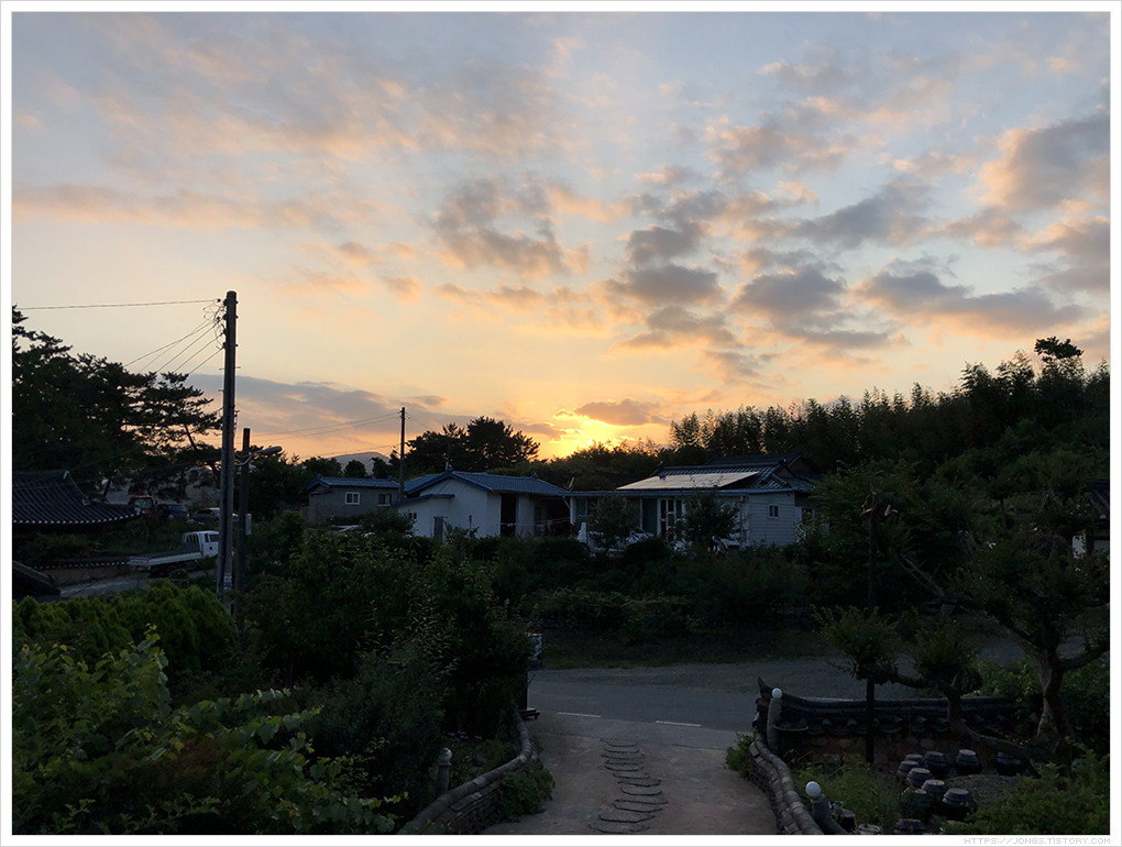 ▼ 예약 시간이 아직 되지 않았고 앞선 손님의 자리를 정리하는 시간이라 저녁 노을을 보며 기다리고 있습니다. 저녁 햇살이 부드럽고 따스합니다. ^^