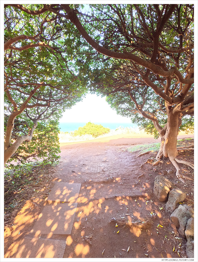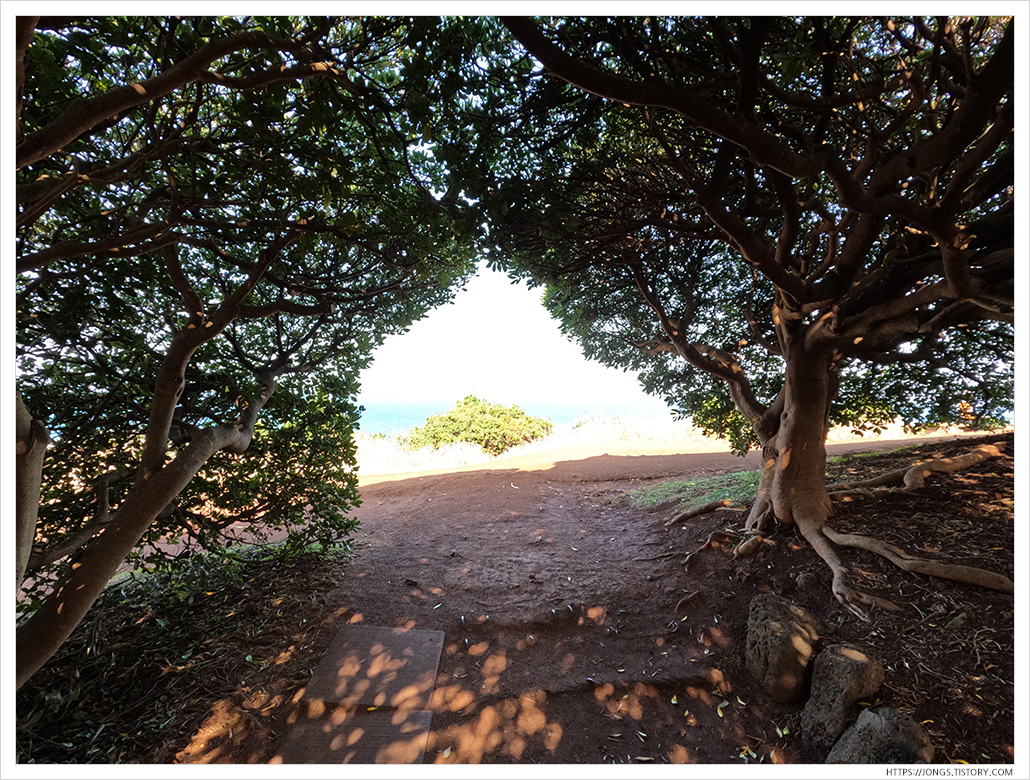 ▼ 도두봉의 포토존인 키세스 나무가 있는 곳입니다. 앞에 촬영하는 커플이 있어 기다렸다 사진을 찍었습니다. 정말 예쁘긴 하더군요. 안과 밖의 빛 차이가 커서 사진 촬영하기에는 난이도가 있는 곳이였습니다.