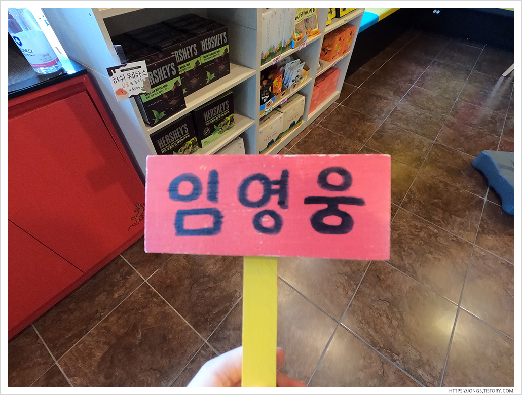 ▼ 다시 도두봉 근처로 가서 리치망고로 가서 망고주스 한잔 하려고 합니다. 스페셜망고쉐이크(7,500원)를 주문했습니다. 진동벨 대신 '임영웅' 막대를 주셨습니다. 이번에는 임영웅~