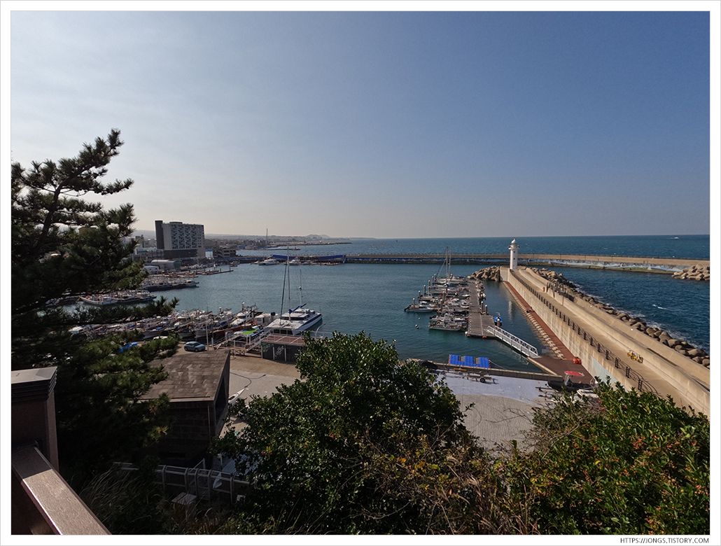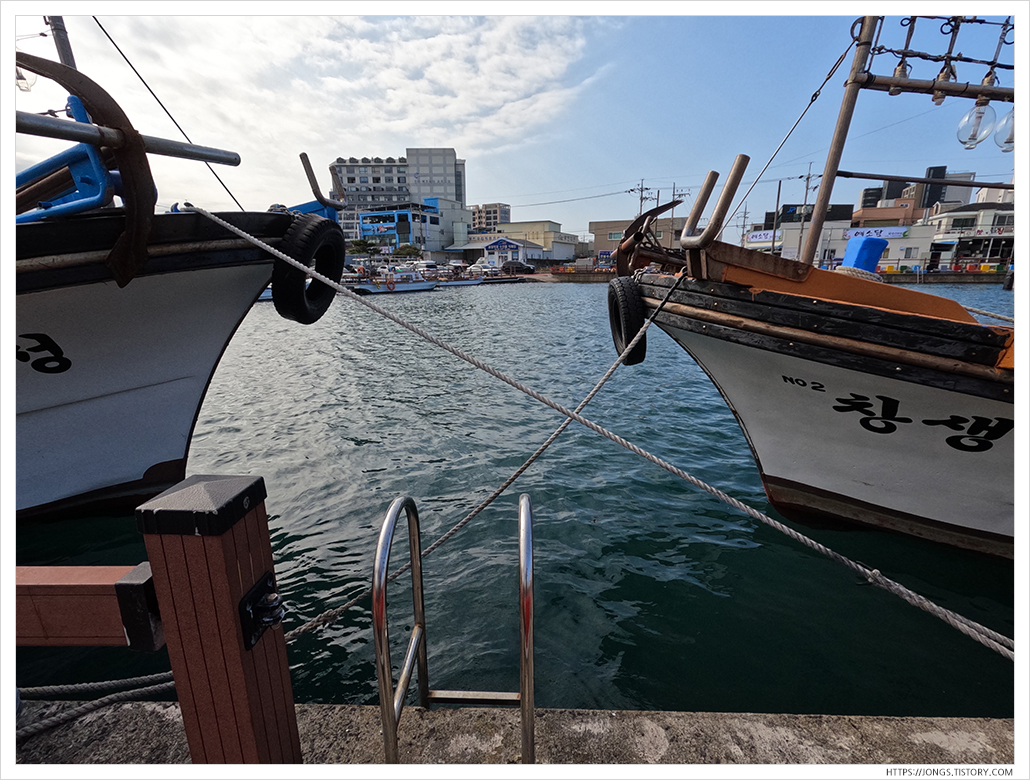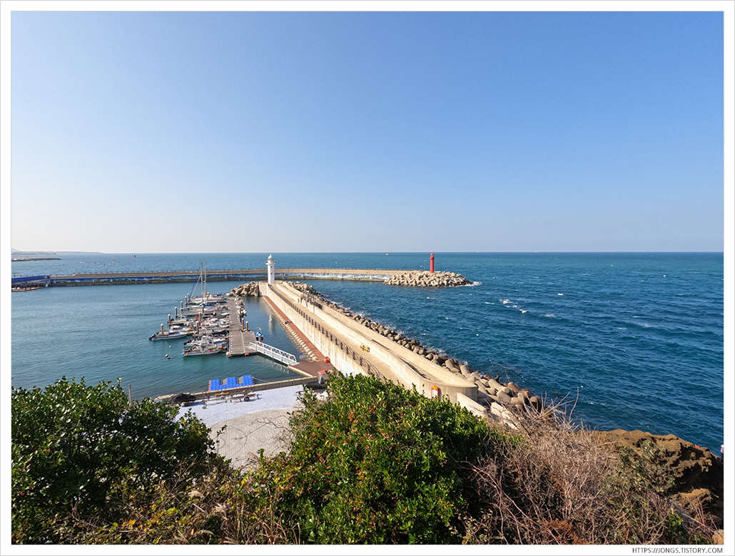 ▼ 도두항에 물이 들어 차 있던데 물 높이가 도로와 차이가 거의 나지 않을만큼 가득 차 있었습니다. 파도가 많이 치면 물이 도로로 많이 밀려 나겠던데요. 예전에는 물이 빠졌을 때 왔었는데 거의 바닥까지 물이 빠지는 구조입니다.