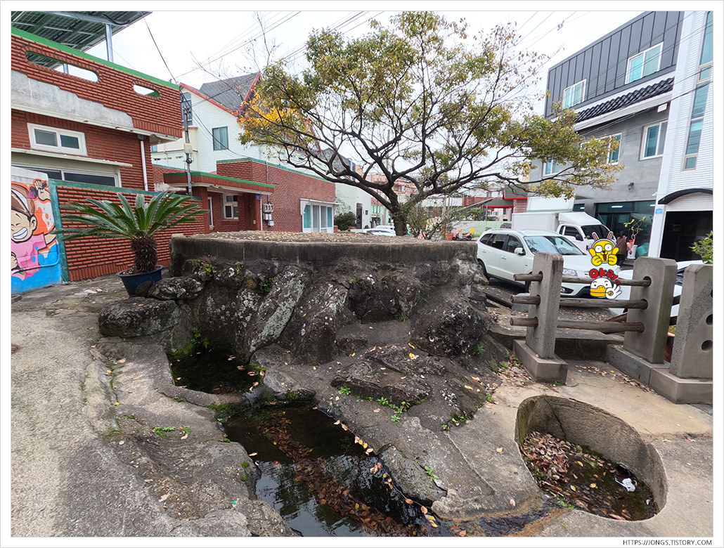 ▼ 차에서 망고주스 한잔 하고 도두항과 도두봉으로 가 봅니다. 제주공항과 가까워서 이 곳도 많이 들리는 관광지중의 하나죠. 그리고 주차장에 건너편에 도두오래물이라고 있던데 외부에 드러난 곳은 아닌 것 같았습니다. 이 곳으로 추정되는 곳인 것 같은데 건물 내에 있는 듯합니다.