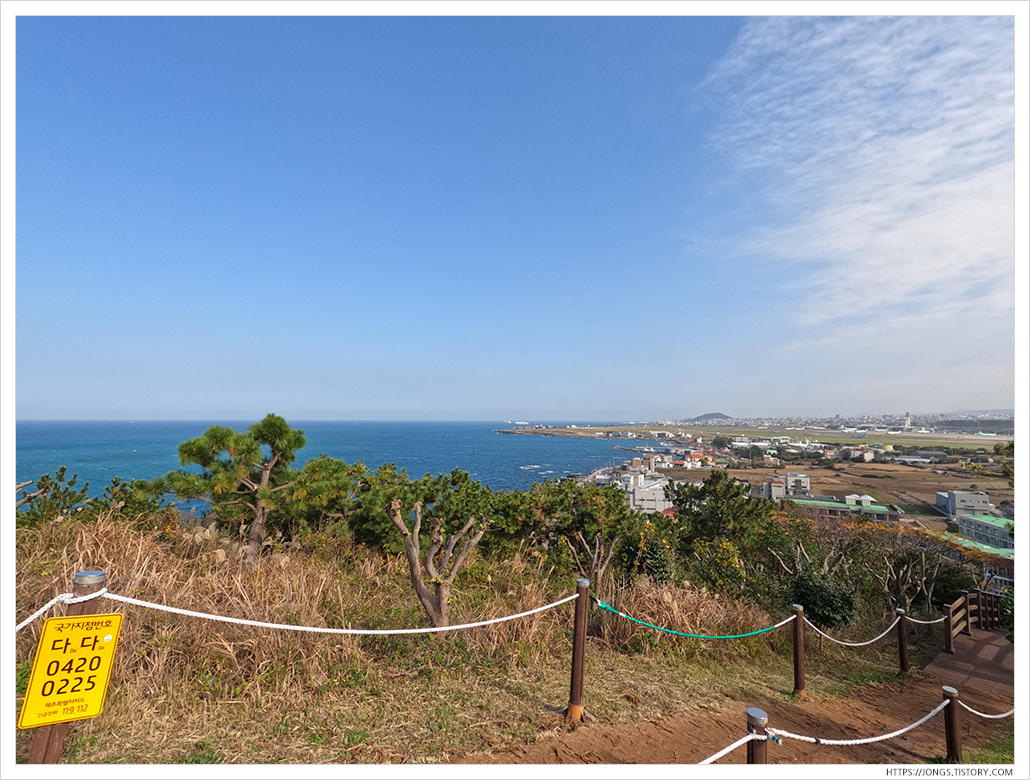 ▼ 도두봉으로 올라가는 길이 여러군데가 있습니다. 도두항에서 공중화장실을 가로질러 올라가는 길로 시작을 했습니다. 도두봉에 오르면 제주시 앞바다와 제주공항, 한라산을 한눈에 조망할 수 있습니다.