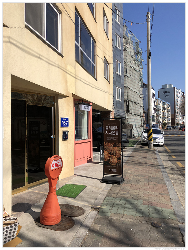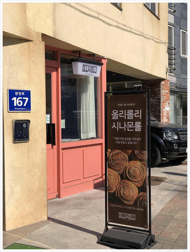 경기도 안양에 '올리롤리' 시나몬롤 전문점이 있어 가 보았습니다. 'SBS 생방송 투데이 빵플레이스'에 방송될 때 보고 한번 가 보고 싶어서 기억해 놓았다 과천 인근 안양이라 시나몬롤 사러 갔습니다. 안양 학의천 뚝방길에 있고 뚝방길에 주차선이 그어져 있어 빈 자리를 찾아 주차를 했습니다. 차가 많긴 했지만 '올리롤리' 인근에 빈 자리가 있어 바로 주차했습니다.