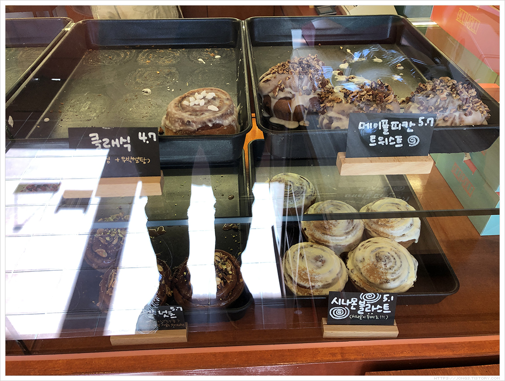 올리롤리의 주력 메뉴인 시나몬롤은 개인적인 시나몬롤에 대한 맛과 경험의 기억을 싹 바꿀정도로 충격적이었습니다. 정말 맛을 잘 냈고 시나몬의 향과 단맛이 딱 적당하였습니다. 시나몬롤 괜찮을까, 구입하러 갈까말까 많이 고민이 되었었는데 명불허전이네요. 방송에 나올만한 이유가 있었습니다. 이런 시나몬롤이라면 대환영이며 다른 시나몬롤이 궁금해지네요. 계절한정판 메뉴들과 구입하러 갔을 때 판매가 완료된 것들을 구입하지 못해 아쉬움이 크고 다음에 다른 메뉴 꼭 구입해서 먹어보고 싶습니다. ^^