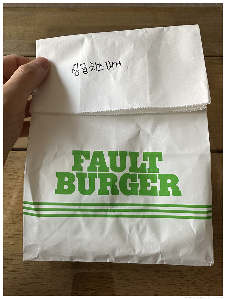 ▼ 싱글치즈버거(8,300원)를 구매했고 포장해서 집으로 가지고 왔습니다.