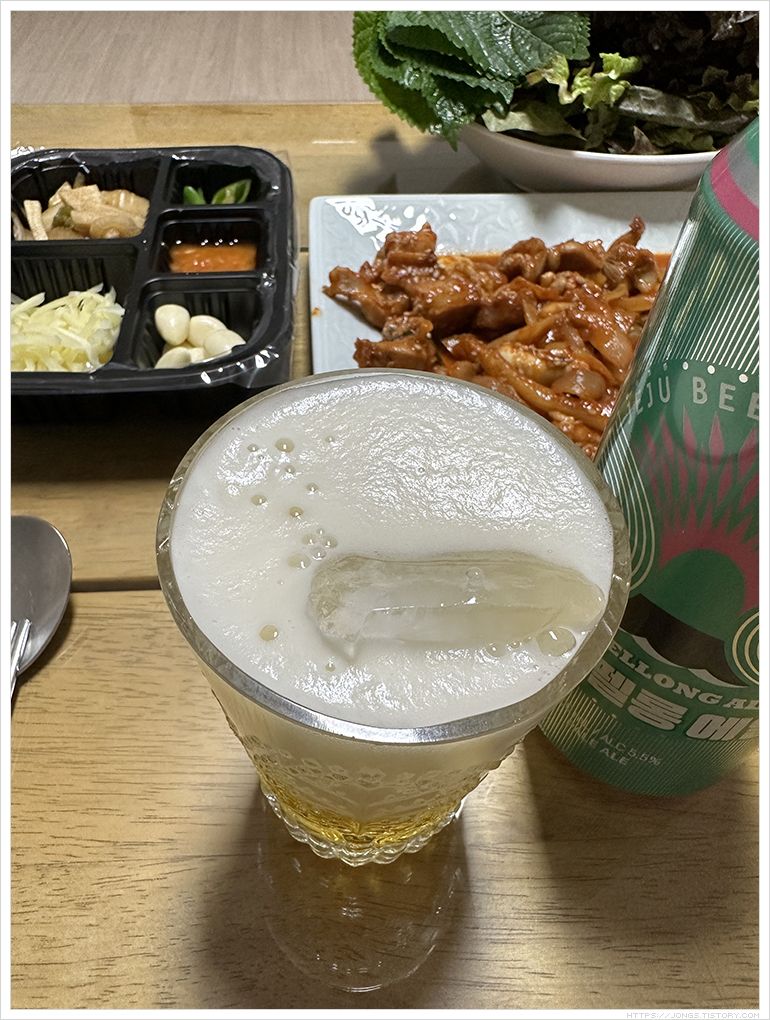 ▼ 두 번째주는 제주펠롱에일입니다. 제주의 귤향을 담은 맥주입니다. 얼음 넣은 맥주가 술술 넘어갑니다.