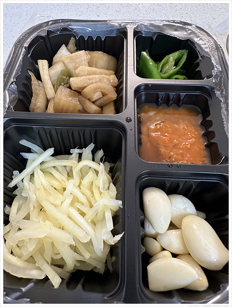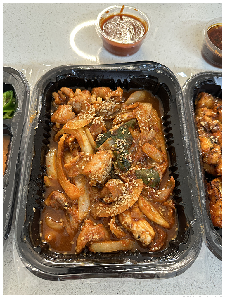 그러다 한참이 지났지나서 이제야 이 음식점 음식을 먹어보게 되었습니다. 금요일 퇴근 후 집에서 일주일의 피로를 풀기 위해 포장을 해 와서 먹었고 3주째 먹고 있어요. 원래 한번 꽂히면 아~ 이제 조금 쉬어도 되겠구나 정도 되면 쉬었다 먹거나 다른 음식을 찾는스타일입니다.