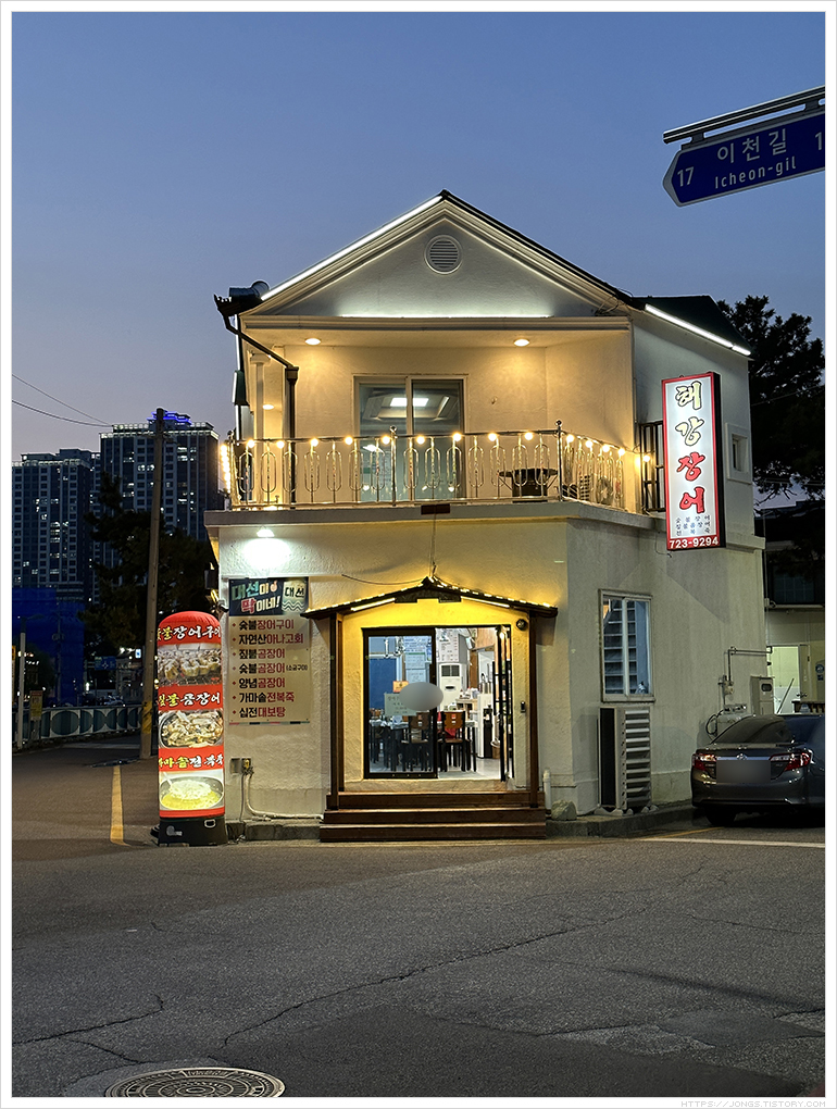 호찐빵을 사러 가거나 일광해수욕장쪽에 바다를 보러 가면서 많이 지나 다닌 음식점이 있는데 점심 때 지나가면 꼼장어 굽는 냄새가 주변에 가득해 어느 음식점인지 눈길을 줄수 밖에 없는 곳이 있습니다. 그 음식점을 보면 메뉴가 곰장어와 장어라는 것과 사람들이 이렇게 많이 오는데 맛집인가, 한번 먹어 봐야겠네라는 생각이 드는 곳입니다 .